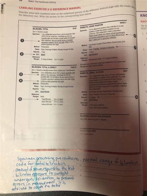 Reference Manual Describe What Each Numbered Item On The Underlined Portion Of The Reference Manual Page Tells The Reader The Laboratory Test.